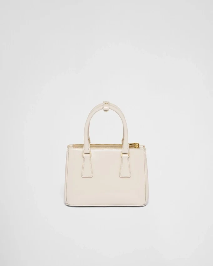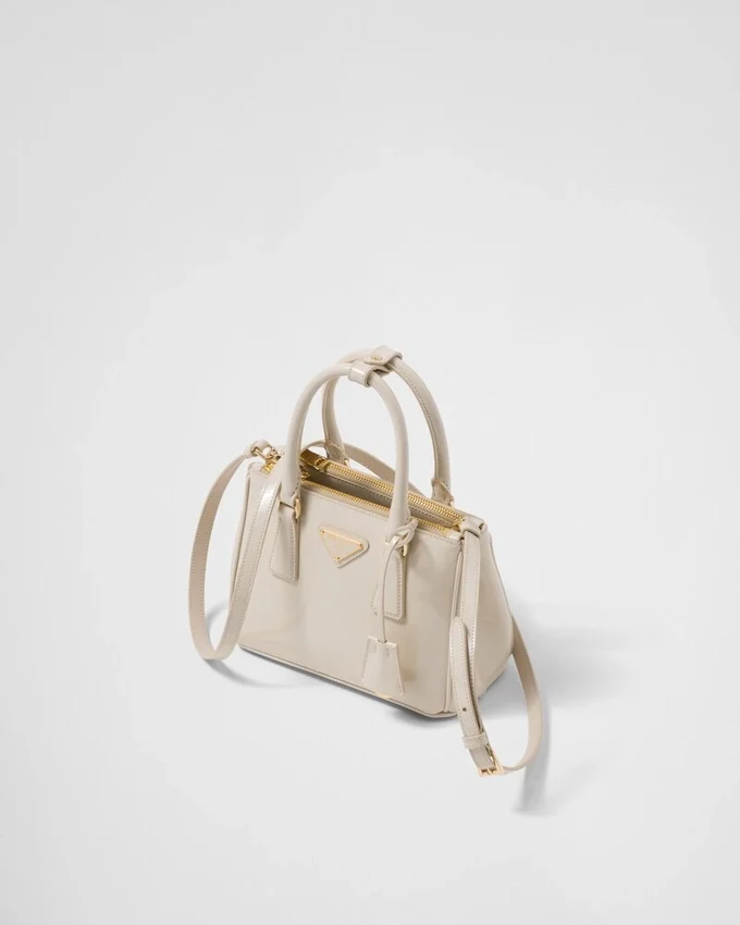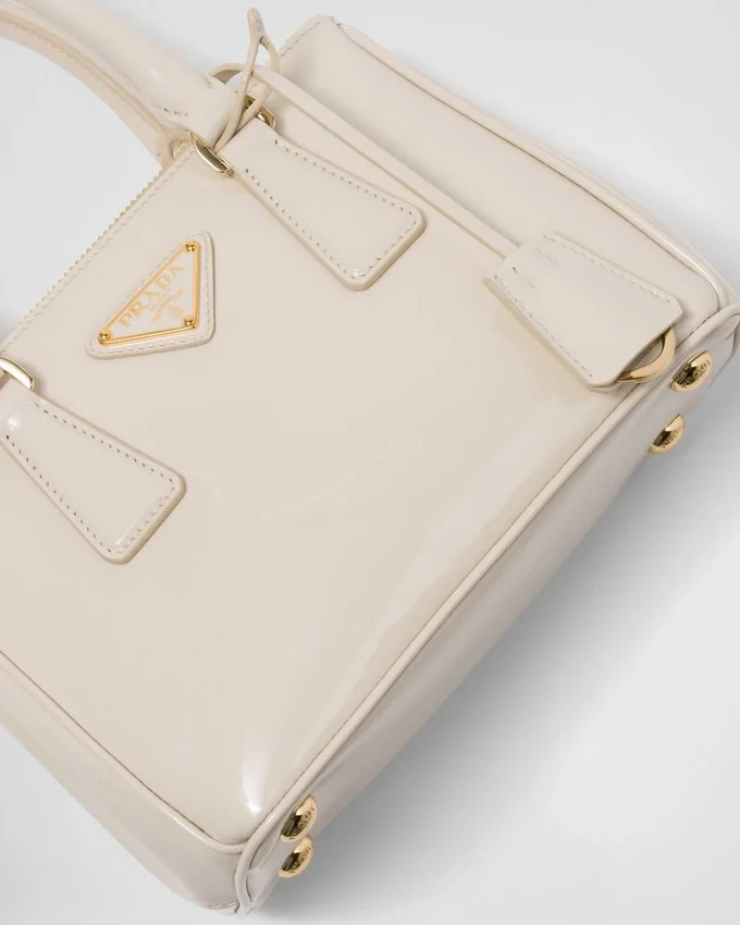 83のパーツから構成されるPrada Galleria バッグの製作は、工業的な精密さと、手作業でしか実現できない洗練された職人技の精度が見事に融合したものです。 そのデザインは、クリーンでエレガントでありながら本質的に実用的であり、歴史と現代性を融合させた、形と機能を調和させた美的言語です。「タイムレス」という概念を定義づけたGalleriaバッグは、21世紀におけるPradaのアイデンティティの象徴となっています。ミニサイズで登場したこのアクセサリーは、エレガントな光沢感を生み出す独自のパテントレザーで作られています。