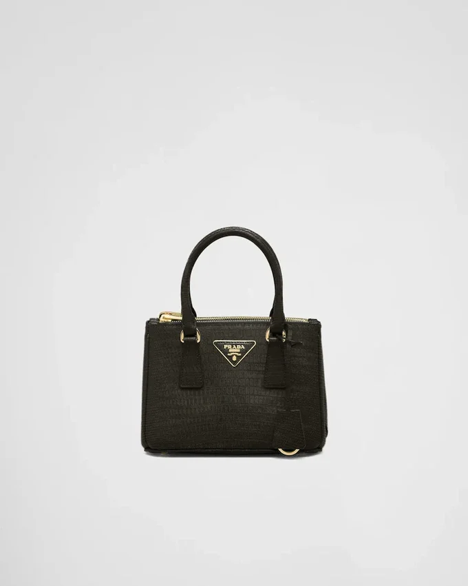 丁寧に手磨きされた上質なトカゲ革が、このコンパクトなデザインを引き立てています。洗練された魅力と、深みのある色合いを際立たせる並外れた光沢が特徴です。83のパーツから構成されるPRADA「Galleria」バッグの製作は、工業的な精密さと、手作業でしか成し得ない洗練された職人技の精度が見事に融合したものです。 そのデザインは、クリーンでエレガントでありながら本質的に実用的であり、歴史と現代性を融合させた、形と機能を調和させた美的表現です。「タイムレス」という概念を定義づけたGalleriaバッグは、21世紀におけるPradaのアイデンティティの象徴となっています。