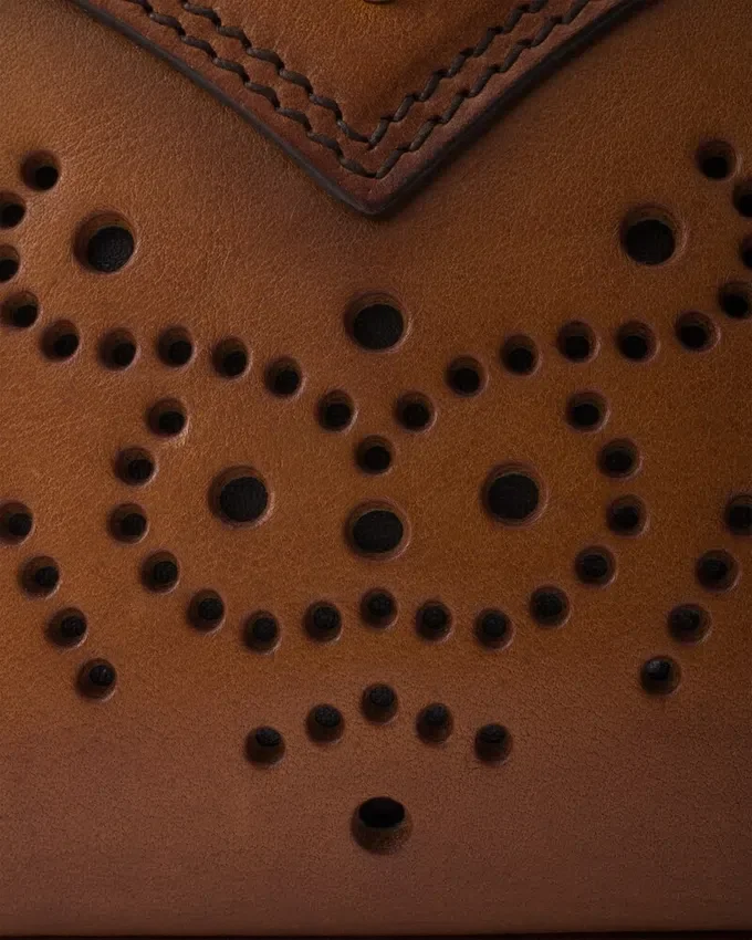 Prada Galleria バッグは、洗練されたシルエットとウエスタンスタイルの大胆な要素を融合させたハイブリッドなデザインで再解釈されています。洗練されたミニサイズで登場したこのアクセサリーは、シェード加工を施したレザーを使用し、ヨークオーバーレイとパーフォレーションモチーフで装飾されています。 新しい素材と洗練された職人技によって絶えず再発見されるこのアイコンは、その多面的で時代を超越した本質を明らかにします。