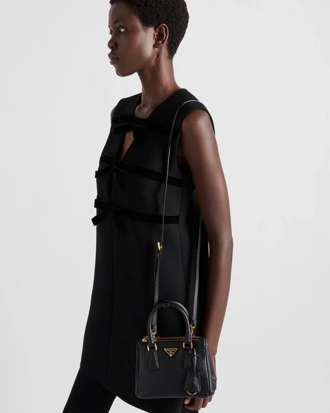 エレガントで多用途なPrada Galleriaバッグは、工業的な精密さと洗練された緻密な職人技を融合させ、クリーンで洗練されたレザーデザインに仕上げています。マイクロサイズで展開されるこのアクセサリーは、マリオ・プラダが特許を取得した象徴的なSaffianoレザーを使用しており、クロスハッチのテクスチャーとワックス加工が特徴です。