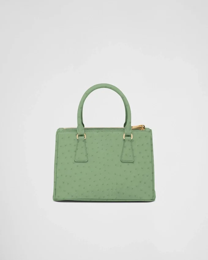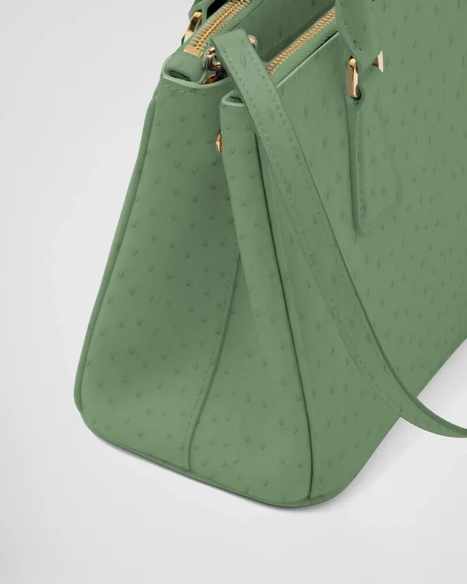 洗練された魅力を放つ、特徴的な天然のポルカドット模様を持つ上質なダチョウ革は、優雅さと繊細さが特徴です。 貴重でありながら非常に耐久性に優れたこのレザーは、手作業で加工されており、ブランドの時代を超えたエレガンスの真髄を表現するこのPrada Galleriaバッグを特徴づけています。このバッグは、1913年にマリオ・Pradaがミラノのヴィットーリオ・エマヌエーレ2世Galleriaにオープンした歴史的なPrada店にちなんで名付けられました。 このアクセサリーは、ラグジュアリーレザーグッズにおけるPradaの100年にわたる卓越性を体現しており、実用的なデザインと構造的なラインを通じて、万華鏡のような現代性を解釈しようとするブランドの現代性とスタイルのアイデンティティを反映しています。