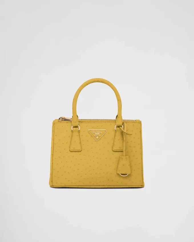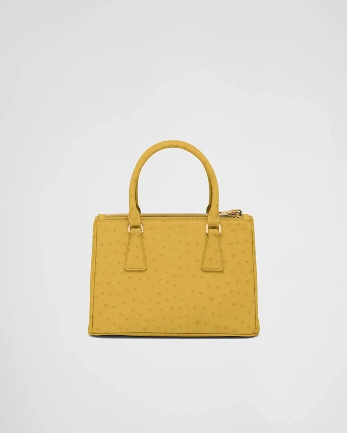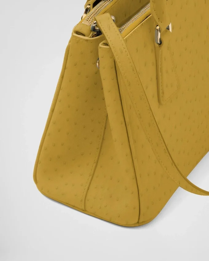上品で繊細なダチョウ革は、独特な天然のポルカドット模様と洗練された魅力が特徴です。 貴重でありながら非常に耐久性に優れたこのレザーは、手作業で加工されており、ブランドの時代を超えたエレガンスの真髄を表現するこのPRADA Galleriaバッグを特徴づけています。このバッグは、1913年にマリオ・プラダがミラノのヴィットーリオ・エマヌエーレ2世Galleriaにオープンした歴史的なプラダ店にちなんで名付けられました。 このアクセサリーは、ラグジュアリーレザーグッズにおけるPradaの100年にわたる卓越性を体現しており、実用的なデザインと構造的なラインを通じて、万華鏡のような現代性を解釈しようとするブランドの現代性とスタイルのアイデンティティを反映しています。