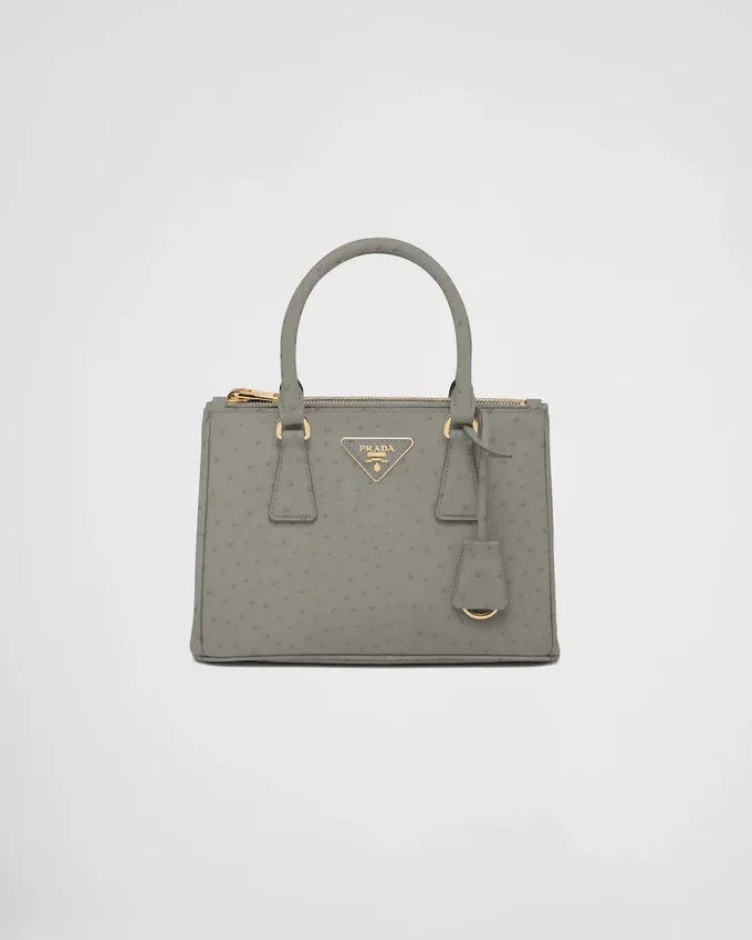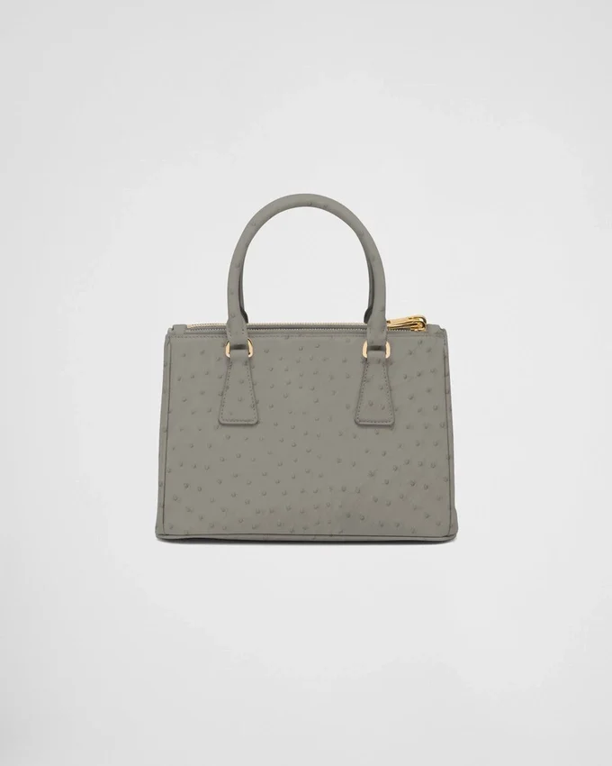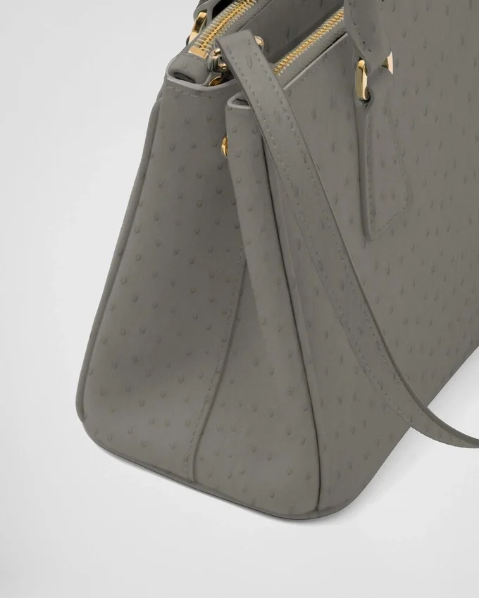 上品で繊細なダチョウ革は、独特な天然のポルカドット模様と洗練された魅力が特徴です。 貴重でありながら非常に耐久性に優れたこのレザーは、手作業で加工されており、ブランドの時代を超えたエレガンスの真髄を表現するこのPrada Galleriaバッグを特徴づけています。このバッグは、1913年にマリオ・プラダがミラノのヴィットーリオ・エマヌエーレ2世Galleriaにオープンした歴史的なPrada店にちなんで名付けられました。 このアクセサリーは、ラグジュアリーレザーグッズにおけるPradaの100年にわたる卓越性を体現しており、実用的なデザインと構造的なラインを通じて、万華鏡のような現代性を解釈しようとするブランドの現代性とスタイルのアイデンティティを反映しています。