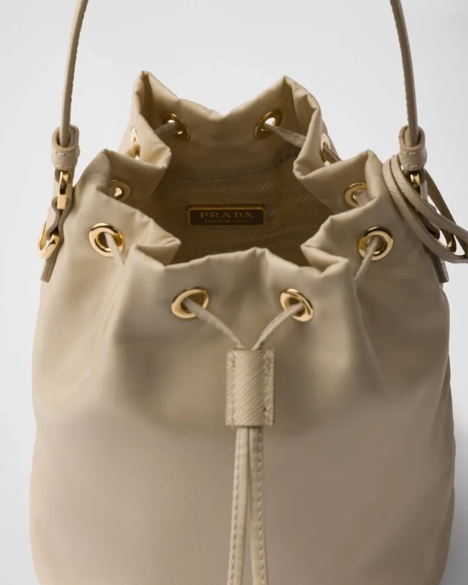 バケットシルエットの「Re-Nylon」製ミニバッグは、アーカイブスタイルをRe-Editionしたモデルです。ハンドバッグとして、または取り外し可能なショルダーストラップを付けてお使いいただけるこのアクセサリーは、レザーのディテールがアクセントとなり、エナメル加工されたメタル製の三角ロゴが、アイコニックなシグネチャーとして仕上げを際立たせています。 製品の特徴を保ち、マイクロファイバーの抜け落ちを抑えるためのサステナブルなケアとして、頻繁な洗濯は避けてください。使用後は毎回風通しの良い場所で乾かし、専門のエコドライクリーニング店にてドライクリーニングを行ってください。