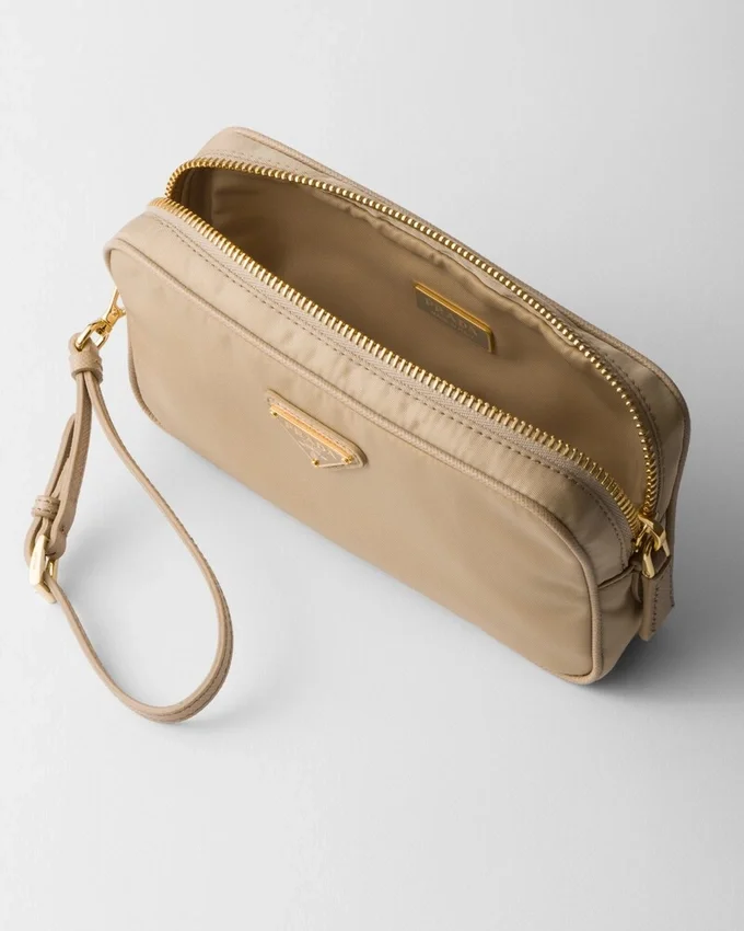 ミニマルなデザインが特徴の、汎用性が高く洗練されたこのポーチは、Pradaコレクションの象徴的な素材のサステナブルな進化形である「Re-Nylon」で作られています。再生ナイロンの機能性と、レザーのリストストラップやゴールドトーンの金具といった洗練されたディテールが見事に融合しています。 エナメル加工されたメタル製の三角ロゴが、このアクセサリーにアイコニックなアクセントを添えています。製品の特徴を保ち、マイクロファイバーの抜け落ちを抑えるためのサステナブルなケアとして、頻繁な洗濯は避けていただくことをお勧めします。ご使用後は毎回風通しの良い場所で乾かし、専門のエコドライクリーニング店にてドライクリーニングを行ってください。
