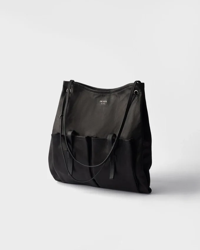 柔らかなボリューム感と洗練されたラインを持つこのバッグは、耐久性に優れたテクスチャードレザーを使用しており、力強く機能的なキャラクターを醸し出しています。広々としたシルエットは実用的で多用途なスタイルを体現しており、デザインを豊かに彩るユーティリティスタイルのディテールが際立っています。