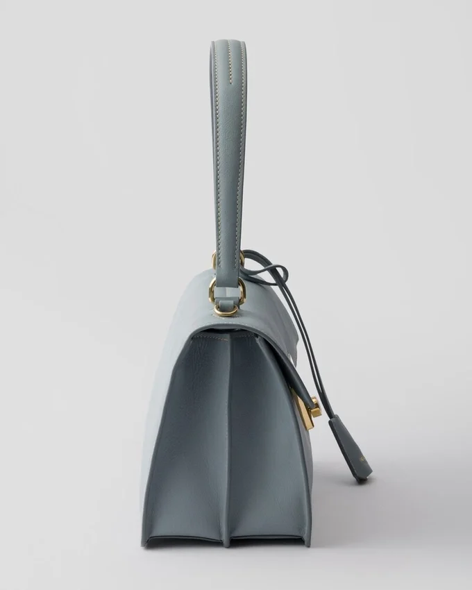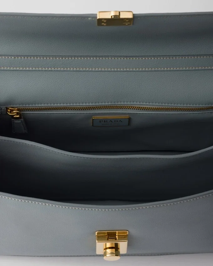 堅牢でフォーマルなビジネスバッグから着想を得たこのレザーバッグは、クラシックなオフィスバッグのシルエットを新たな解釈で再構築したものです。典型的な形状に、洗練されたフェミニンなディテールが加わり、柔らかな印象に仕上げられています。アーカイブから採用された縦型の留め具が、ショルダー掛け可能な長いハンドルが特徴のこのアイテムを引き立てています。