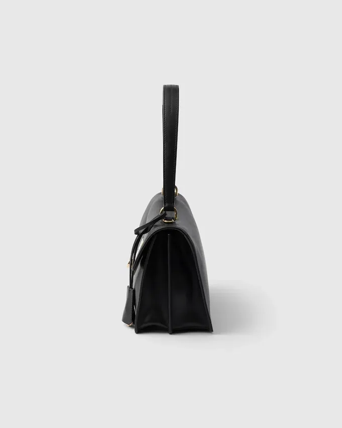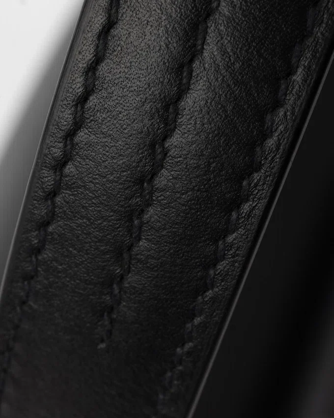 堅牢でフォーマルなビジネスバッグから着想を得たこのレザーバッグは、クラシックなオフィスバッグのシルエットを新たな解釈で再構築したものです。典型的なフォルムは柔らかな印象へと昇華され、洗練されたフェミニンなディテールが施されています。アーカイブから採用された縦型の留め具が、ショルダー掛け可能な長いハンドルが特徴のこのアイテムを彩ります。