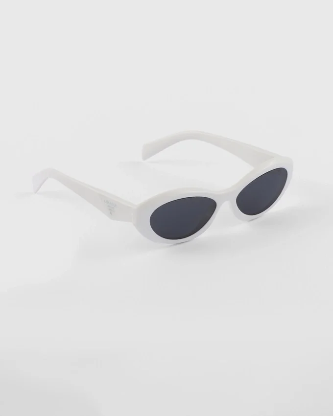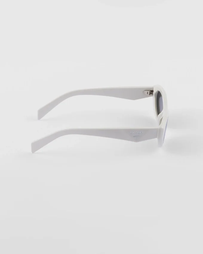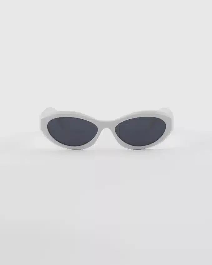 しなやかでわずかに面取りされたリムが特徴のアセテートフレームのサングラス。大胆な女性らしさを表現しています。細身のテンプルは、Prada Triangleロゴを象徴的に描いた洗練された立体的なディテールによって際立っています。