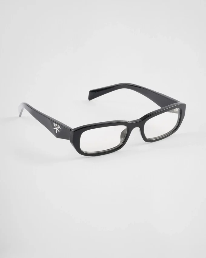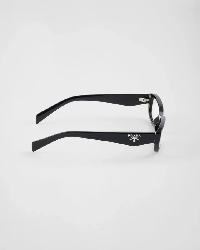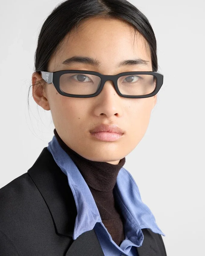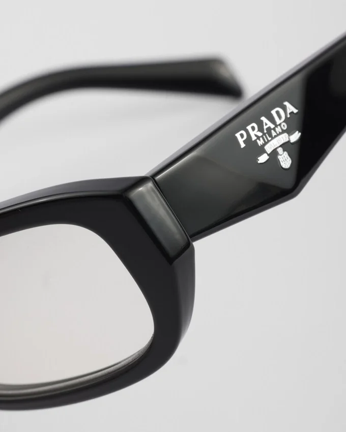 ファセット加工されたリムと幾何学的なラインが特徴のアセテート製サングラス。テンプルには、象徴的なトライアングルロゴを引き立てる洗練された立体的な仕上げが施されています。