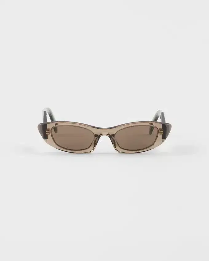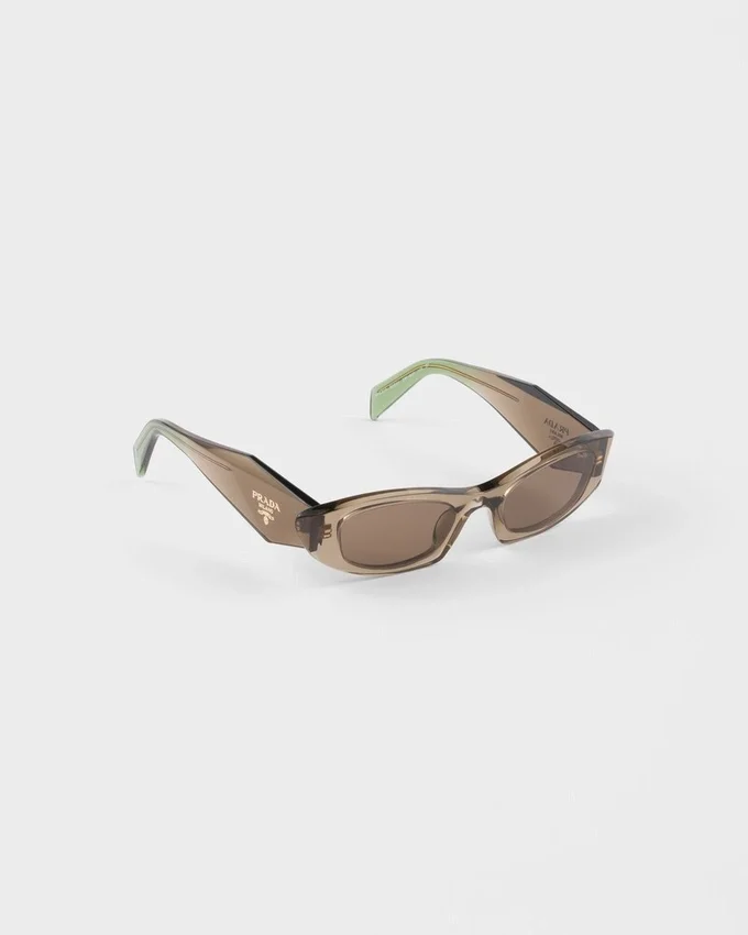 大胆なスタイルのアセテート製サングラス。アセテートフレームは、すっきりとしたラインの細身で幾何学的なフロントと、面取りされた角張った外縁が特徴です。テンプルの立体的な仕上げには、伝統的なPrada Triangleロゴを象徴的に解釈したデザインが施されています。