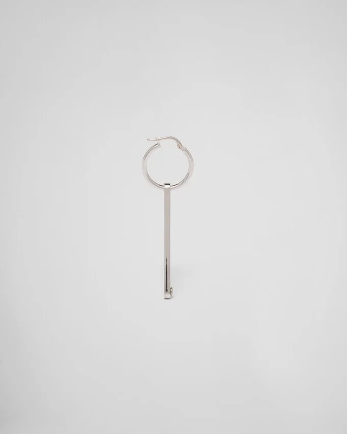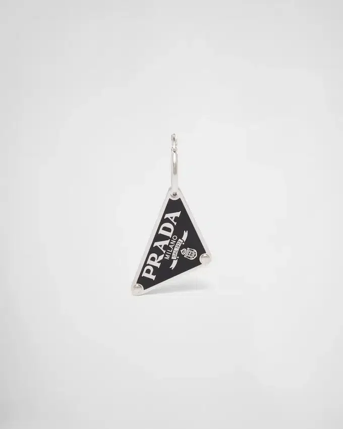 アイコニックで洗練されたトライアングルロゴは、パンクの影響を現代的に再解釈した925スターリングシルバー製の新しいジュエリーラインの主役です。エナメルで装飾されたPradaの歴史的なシンボルが、この片耳用イヤリングを際立たせています。