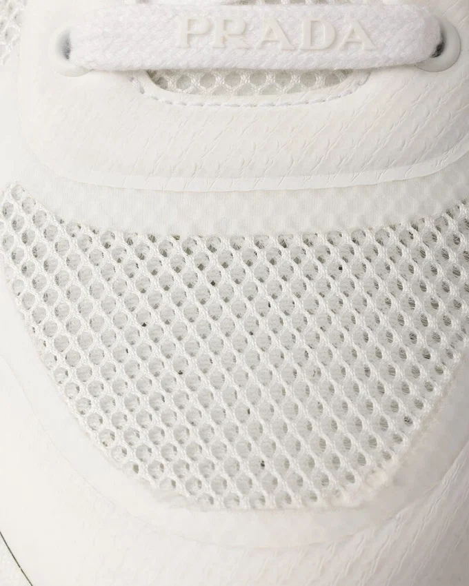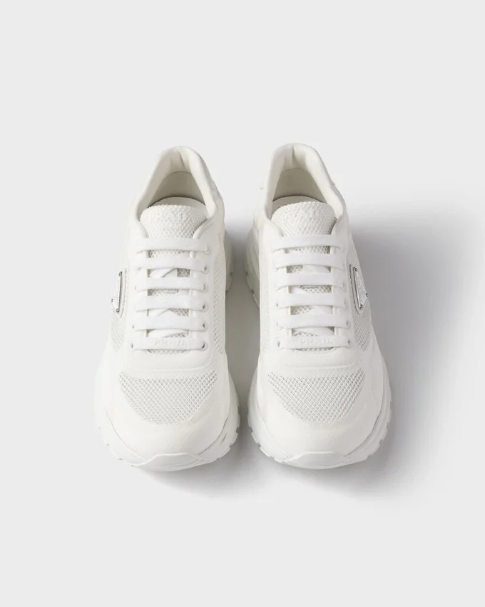 スポーティーなシルエットと実用的でモダンなデザインを特徴とするこのファブリックスニーカーは、履き心地の良いラバーソールが特徴です。アイコニックな「Prax」スタイルを進化させたこのシューズには、Pradaのロゴがあしらわれています。