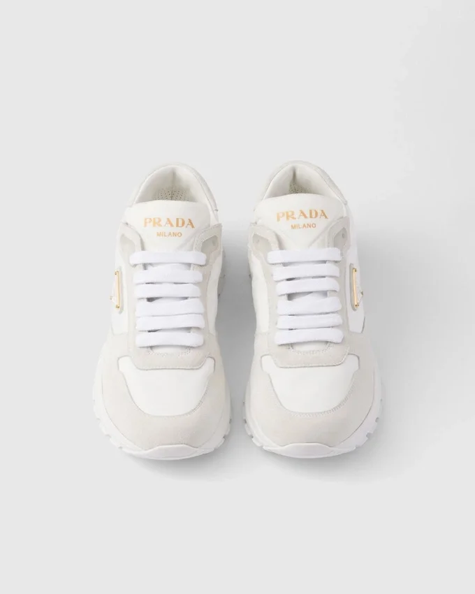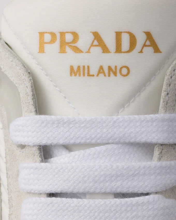Prax 2.0 スニーカーは、スポーティーなデザインと現代的なラインを特徴とし、機能的なRe-Nylonとスエードの柔らかな肌触りの組み合わせが魅力です。象徴的な三角ロゴが洗練された雰囲気を添え、軽量なラバーソールで仕上げられています。本製品は「Sea Beyond」教育プログラムへの貢献対象外です。