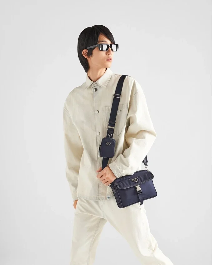 取り外し可能なミニポーチ付きのショルダーストラップを備えたこのフラップバッグは、Pradaの象徴的なSaffianoレザーと、海や漁網、繊維から回収・精製されたプラスチック素材から作られた再生ナイロン糸「Re-Nylon」を組み合わせています。 エナメル製のトライアングルロゴがアクセサリーのアクセントとなり、モダンさと伝統のバランスを演出しています。製品の特徴を保ち、マイクロファイバーの脱落を抑えるためのサステナブルなケアとして、頻繁な洗濯は避けてください。使用後は毎回風通しの良い場所で乾かし、専門のエコクリーニング店にてドライクリーニングを行ってください。