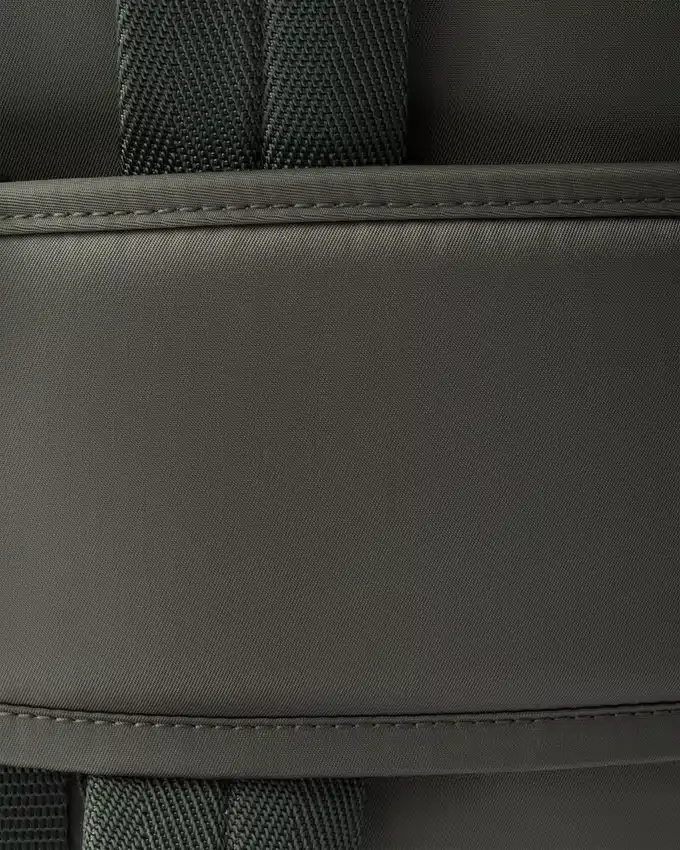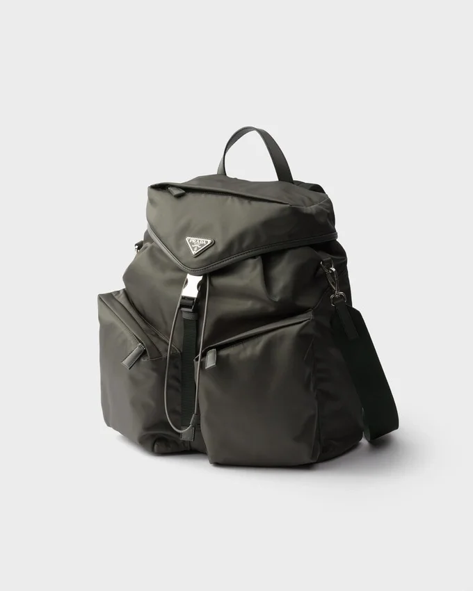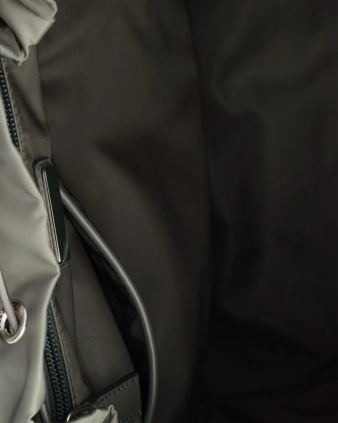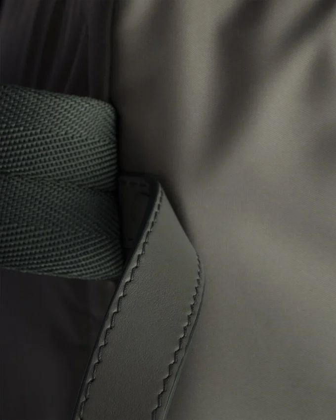 対照的な形状と素材を組み合わせたこのバックパックのデザインは、建築的なボリューム感と力強い幾何学的なラインによって特徴づけられています。すっきりとした明確な幾何学形状の連続は、わずかにパッド入りの革新的なRe-Nylonによってバランスが取られており、柔らかなニュアンスを加えて、多用途で現代的なアクセサリーを完成させています。 特徴的なシルエットは、アイコニックなエナメル加工メタルロゴをあしらったレザーの中央ディテールを縁取る、大型の多機能な斜めポケットが際立っています。製品の特徴を保ち、マイクロファイバーの抜け毛を抑えるためのサステナブルなケアとして、頻繁な洗濯は避けてください。使用後は毎回風通しの良い場所で乾かし、専門のエコドライクリーニング店にてドライクリーニングを行ってください。
