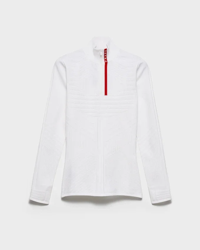機能性と快適性を兼ね備えたこの「Re-Nylon」セーターは、ピケ柄がアクセントとなった、体にフィットするスキニーフィットのシルエットが特徴です。象徴的なプラダ リネア・ロッサのラテックスロゴが、ジッパー付きのタートルネックスタイルを引き立てています。 製品の特性を保ち、マイクロファイバーの抜け落ちを抑えるため、頻繁な洗濯は避けてください。使用後は風通しの良い場所で乾かし、ラベルに記載の洗濯表示に従ってください。