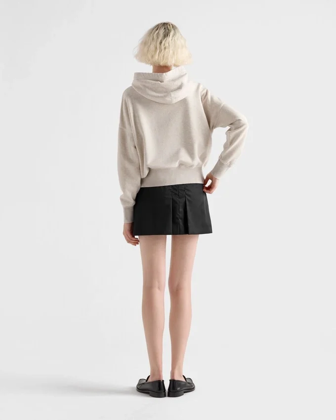 ハイブリッドスタイルのこのRe-Nylonミニスカートは、フェミニンな魅力と再生ナイロンの機能的でスポーティーな特性を融合させています。前後プリーツを施したデザインには、象徴的なエナメル加工のメタルトライアングルロゴがあしらわれています。製品の特徴を保ち、マイクロファイバーの放出を抑えるためのサステナブルなケアとして、頻繁な洗濯は避けていただくことをお勧めします。 ご使用後は毎回風通しの良い場所で乾かし、専門のエコドライクリーニング店にてクリーニングしてください。