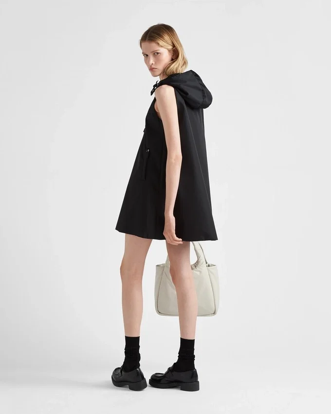 スポーティーでミニマルなラインが特徴の、モダンな魅力あふれるミニドレス。Pradaは異なるスタイルの要素を融合させ、革新的でモダンなキャラクターを持つデザインを生み出しています。Re-Nylon製のこのアイテムは、ドローストリング付きのフードと、スポーティーな印象を与えるインタルシアロゴが際立っています。 製品の特性を保ち、マイクロファイバーの抜け落ちを抑えるためのサステナブルなケアとして、頻繁な洗濯は避けてください。使用後は毎回風通しの良い場所で乾かし、専門のエコクリーニング店にてドライクリーニングを行ってください。