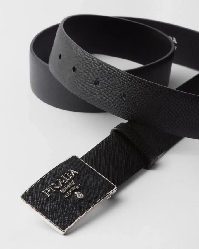- Saffianoレザー張りのメタルバックル