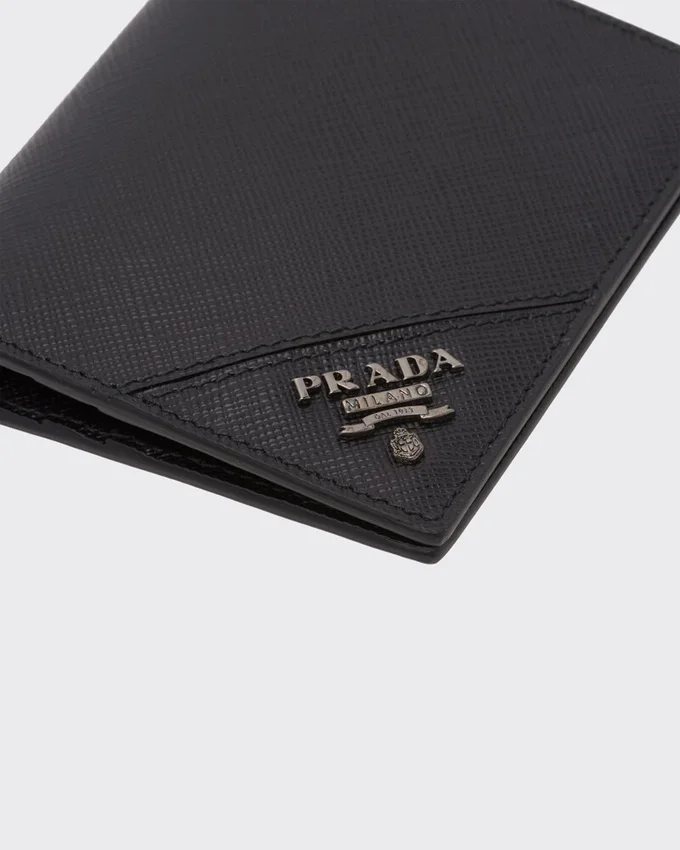 この上質なSaffianoレザー製ウォレットのミニマルなデザインは、角に施されたメタルレタリングのロゴによって際立っています。内側はファブリックで裏打ちされています。