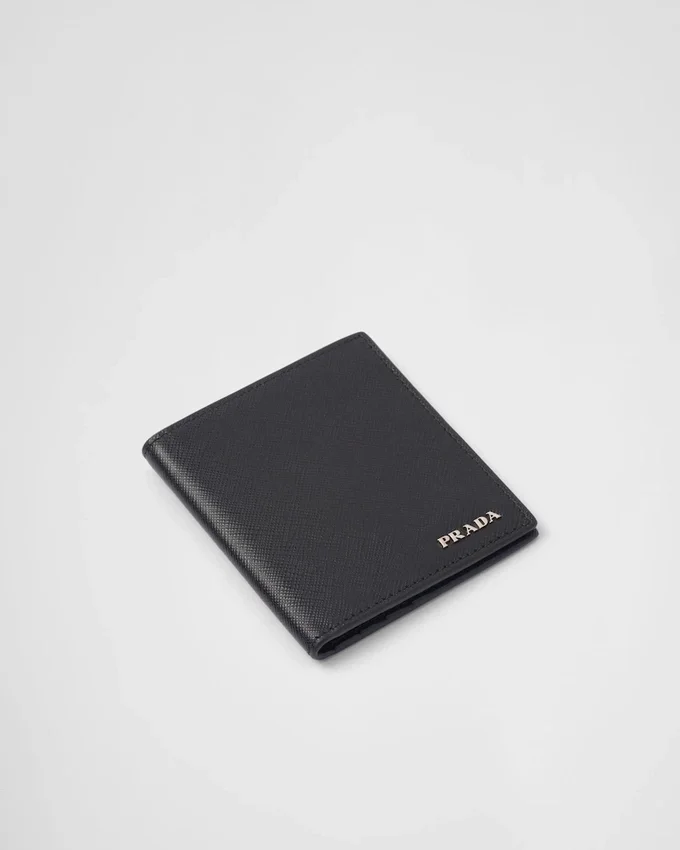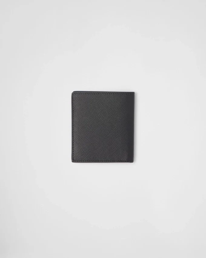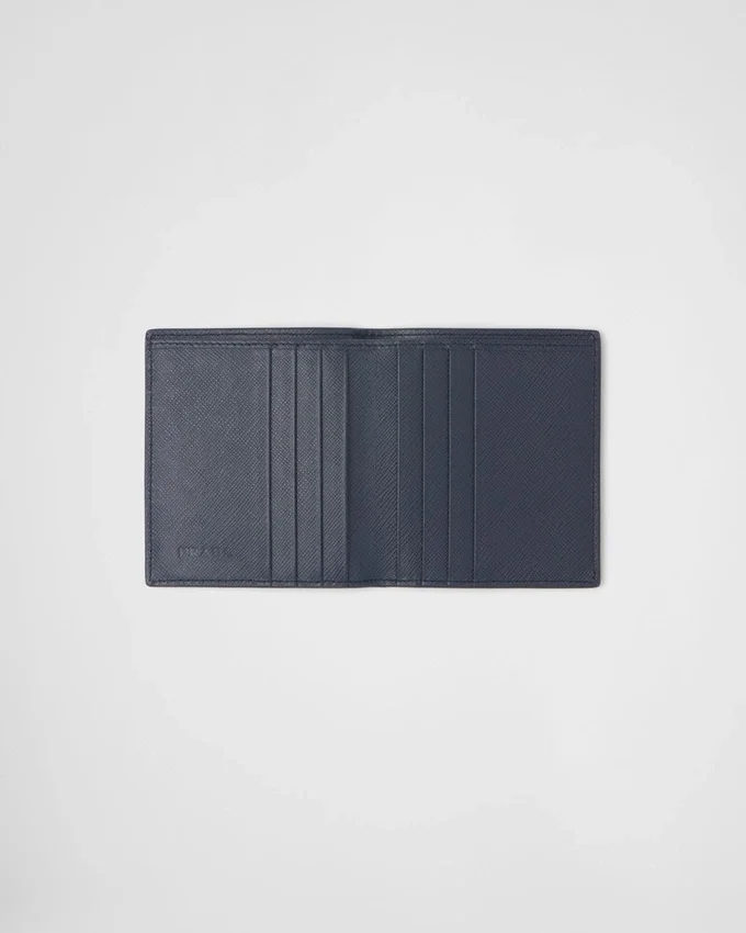 メタルレタリングロゴ入りのSaffianoレザー製ウォレット。コントラストカラーのレザー裏地、紙幣用コンパートメント、クレジットカード用スロット6つ、書類用ポケット2つを備えています。