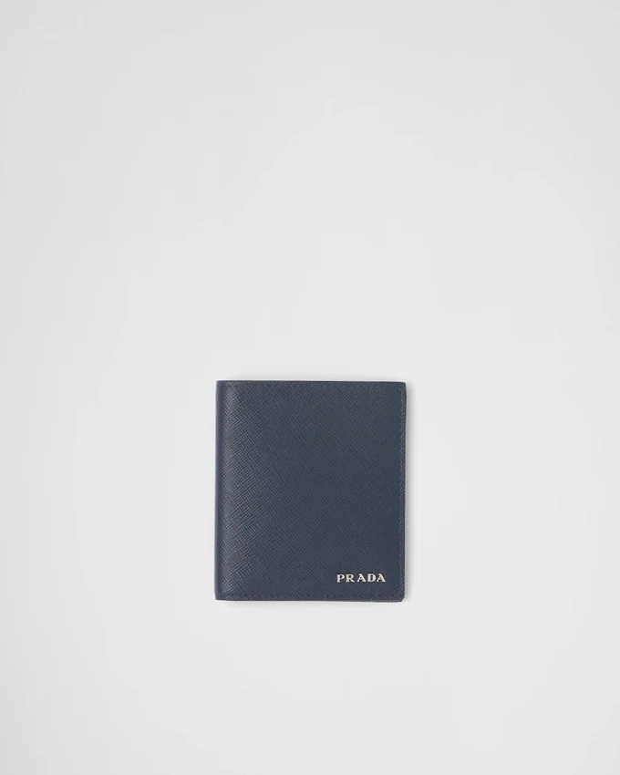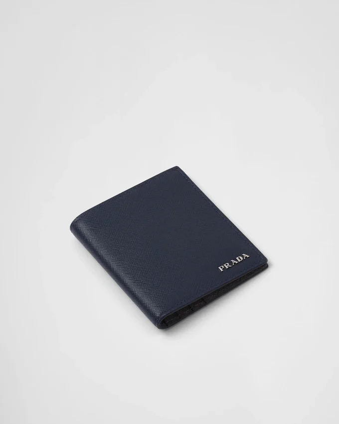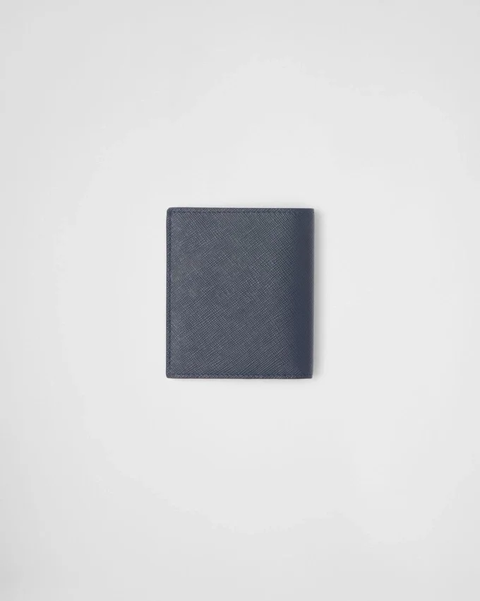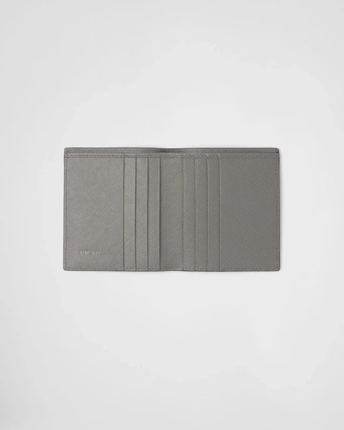 メタルレタリングロゴ入りのSaffianoレザー製ウォレット。コントラストカラーのレザー裏地を採用し、紙幣入れ、クレジットカードスロット6つ、書類ポケット2つを備えています。